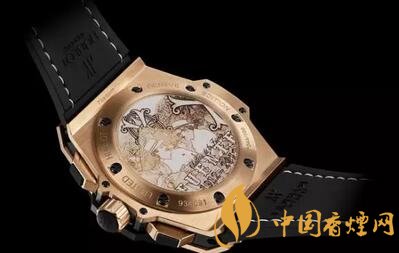 富恩特的宇舶表背面带有富恩特雪茄经典的父子烟田造型。
