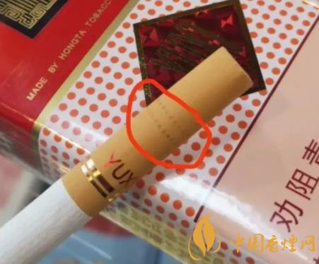 5、香烟过滤嘴上有很小的激光打孔,一般不易看见,可点燃后吸入一口烟后,用手指紧夹烟支中部,然后向烟支反吹吸入的烟气,会留下均匀的细密孔眼。假玉溪的过滤嘴上有的没有激光打孔,有的伪造了激光打孔,但做工粗糙,大小不一。
