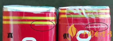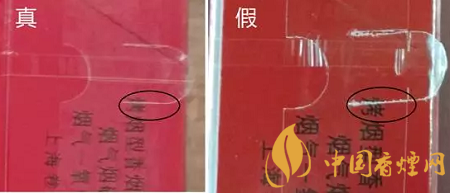 真品硬中华小盒拉带头为半圆形,边缘光滑无毛渣;假烟小盒拉带头半圆形不规则,边缘不够光滑,有毛渣。