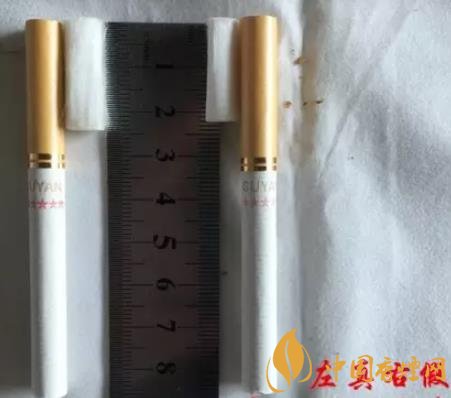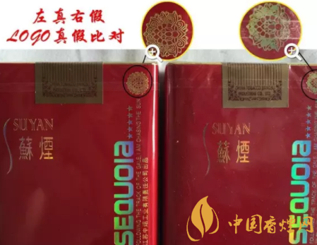 左边的香烟烟盒是真的,苏烟logo旁边的字体色泽也是不一样的,而右边的香烟就是呈金色,颜色也没有左边的香烟那么醒目。