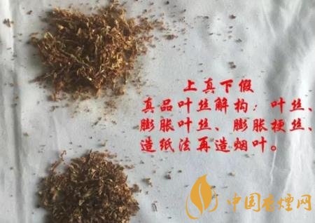 上真下假,正品香烟的烟丝干湿程度适当,不会出现漏油的情况,而且正品烟丝的色泽度偏金黄色一点,假冒的烟丝颜色则是暗黑一点。