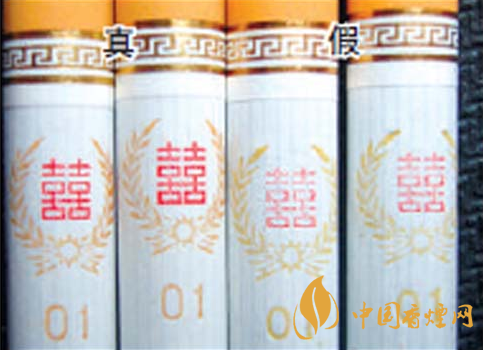 烟支印刷对比:真烟烟支的印刷颜色为金黄色,图案印制精细;假烟烟支的印刷颜色暗淡无光,图案印制粗糙。